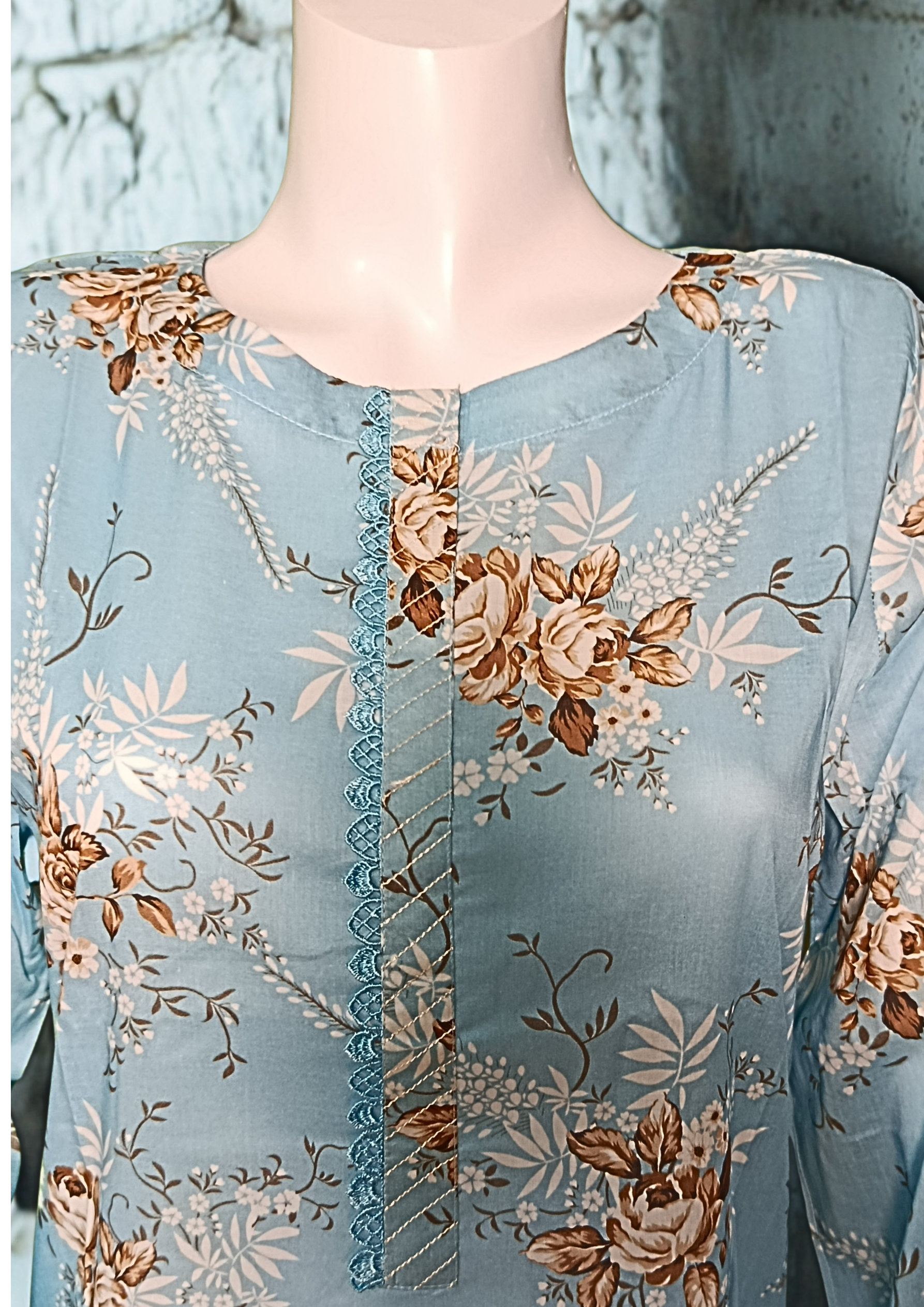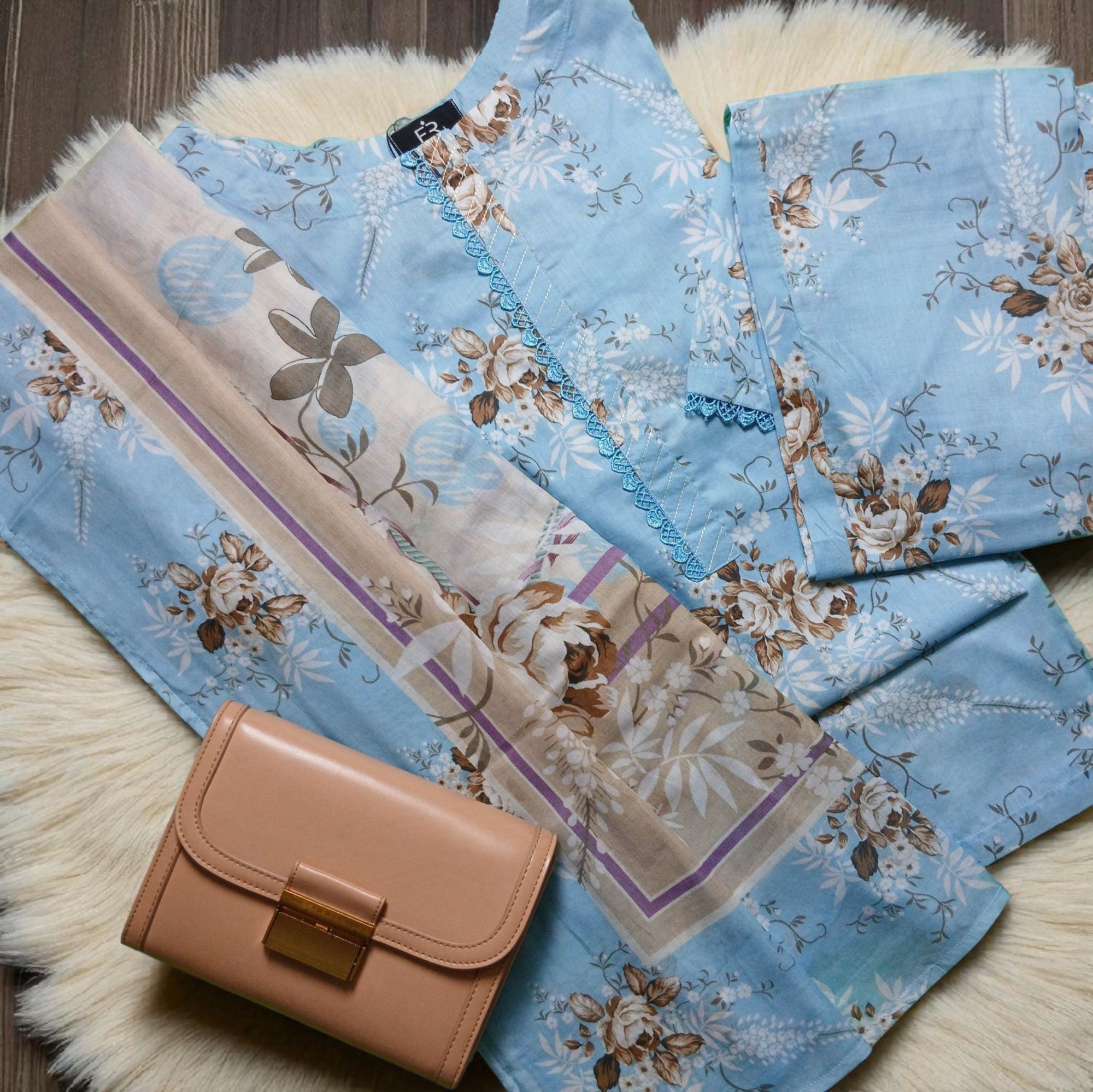 Elevate your everyday look with this Printed Lawn Stitched 3-Piece from Rafaaj. Crafted from breathable lawn fabric, the set includes a printed shirt and matching trouser, perfect for daily wear or casual outings. A stylish choice for summer wardrobes at an affordable price.